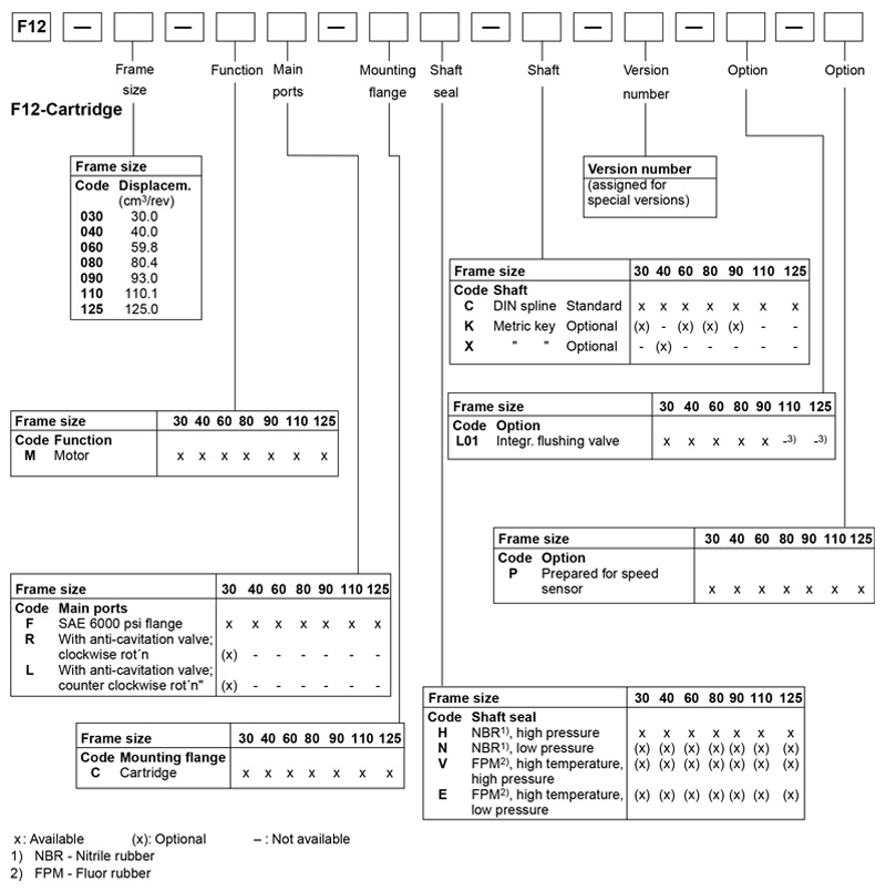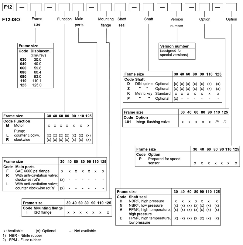 | Displacement (cm³/rev) | 30.0 | 40.0 | 59.8 | 80.4 | 93.0 | 110.1 | 125.0 | 149.8 | 163.1 | 179.8 | 242 |
